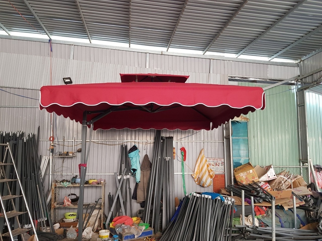 Kết cấu dù lệch tâm vuông có 2 tầng thông gió, có đòn bẩy trợ lực giúp nâng hạ dễ dàng.