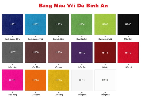 3, Màu Sắc Vải Dù Lệch Tâm Vuông.