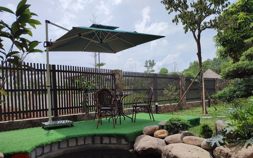 Khung và nan dù được làm từ chất liệu sắt hộp cao cấp, phủ thêm một lớp sơn tĩnh điện giúp cho sản phẩm được bền hơn, chịu được mọi thời tiết mưa nắng ngoài trời, Nên rất phù hợp để sử dụng ở những khu nghỉ dưỡng, như resort, khu biệt thự, khu nhà vườn, khu đô thị sinh thái, nhà hàng, khách sạn….