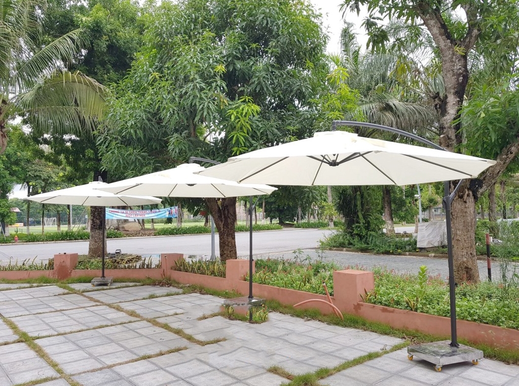 Ô lệch tâm tròn dùng để trang trí sân vườn bạn có thể xoay và điều chỉnh mọi hướng, nấc xoay 360 độ giúp bạn dễ dàng điều chính theo hướng nắng một cách thoải mãi và mang đến khả năng che nắng hoàn hỏa nhất, bạn có thể điều chỉnh ô nghiêng theo ý muốn mà không cân mất thời gian để dịch chuyển cả chân đế của ô.
