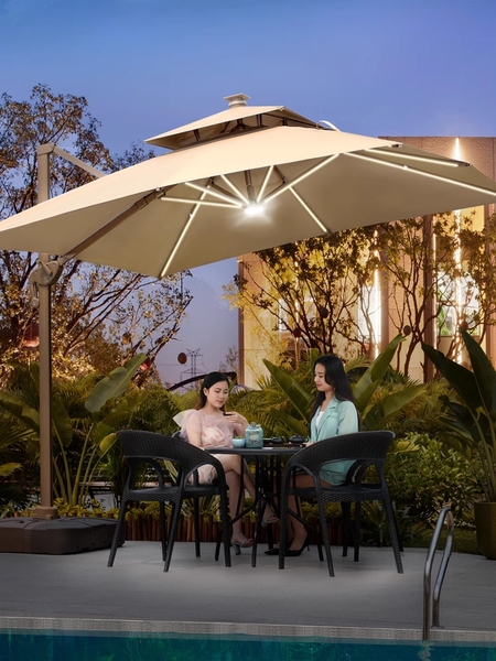Ô dù lệch tâm vuông nâng hạ cao cấp 3m hợp kim nhôm có đèn led